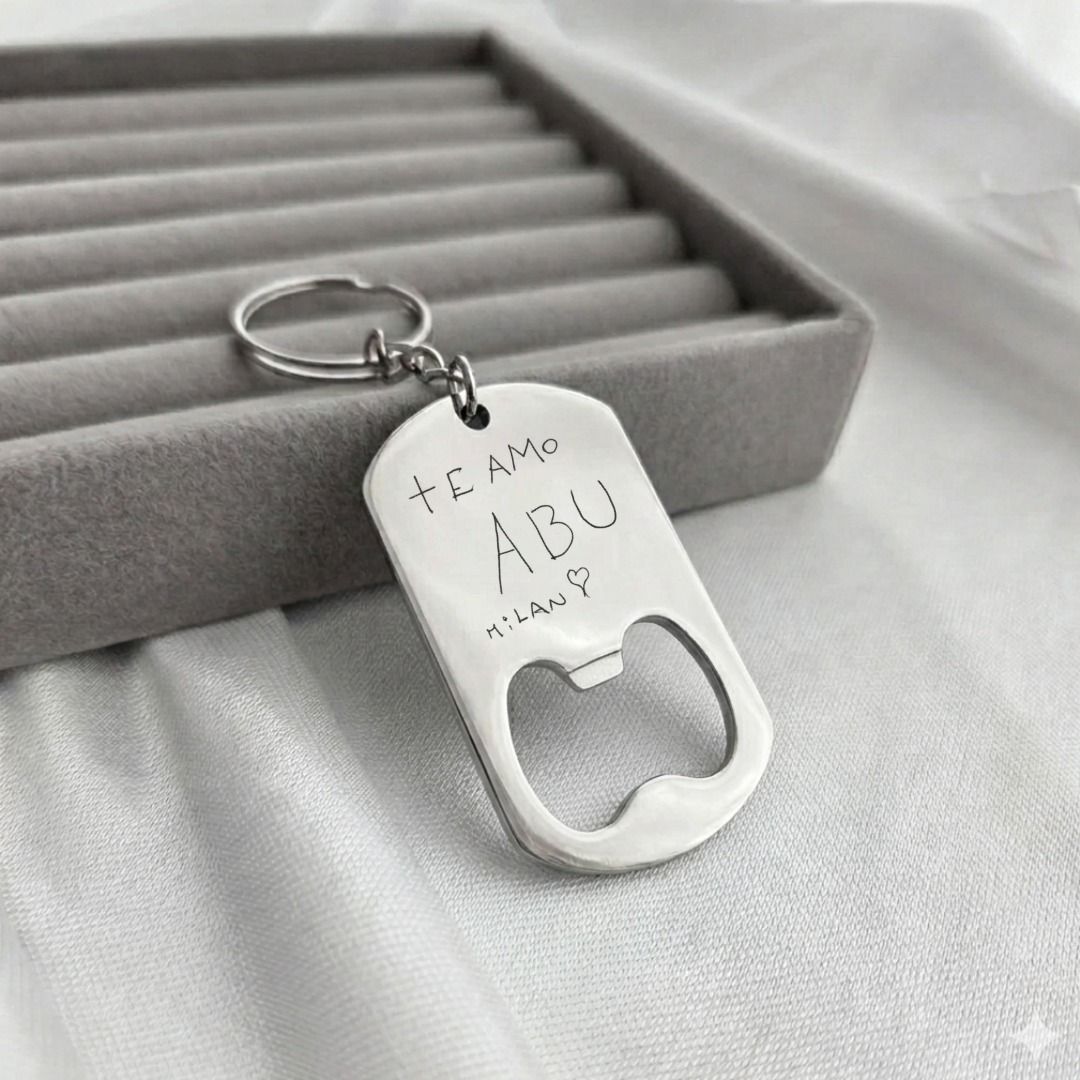 Convertí un dibujo, un mensaje escrito a mano o un texto especial en un llavero destapador único.